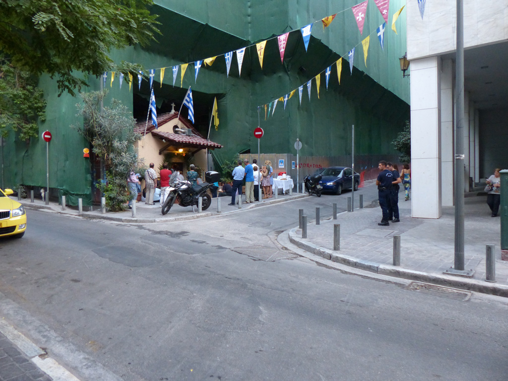 Ended the day eating at a sidewalk café across the plaza from my hotel. An excellent salmon and spinach lasagna and red Rhone wine. Too much of both.