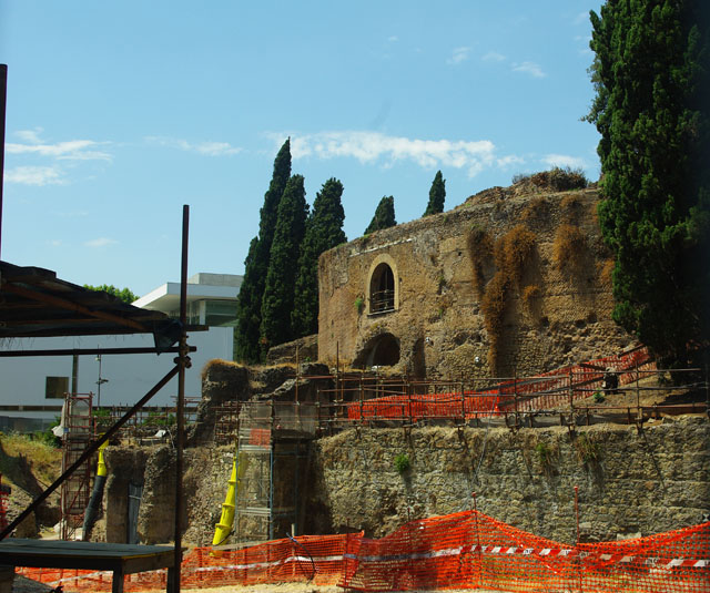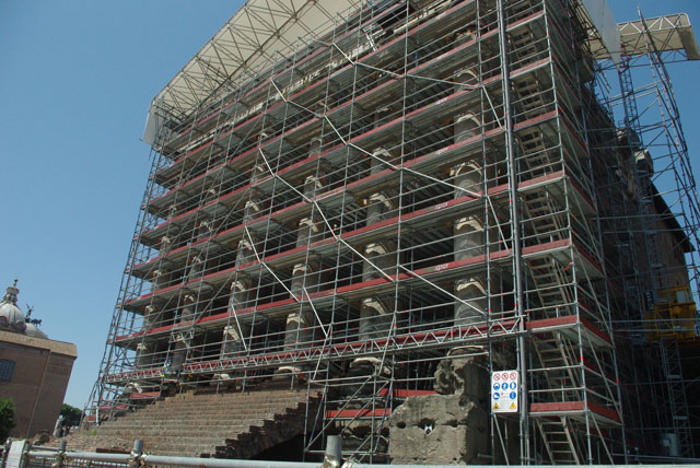My ride to San Marcos was on the more expensive version of the vaporetto. While it is air-conditioned, I chose to sit outside aft so I could get some better pictures. While the absence of cars and trucks in Venice, eliminates some problem, motorized boats cause a problem – waves caused by motorized boats damage the foundations of buildings along the canals. I do have a picture of repairs being made. The wooden piles driven into bay are visible.